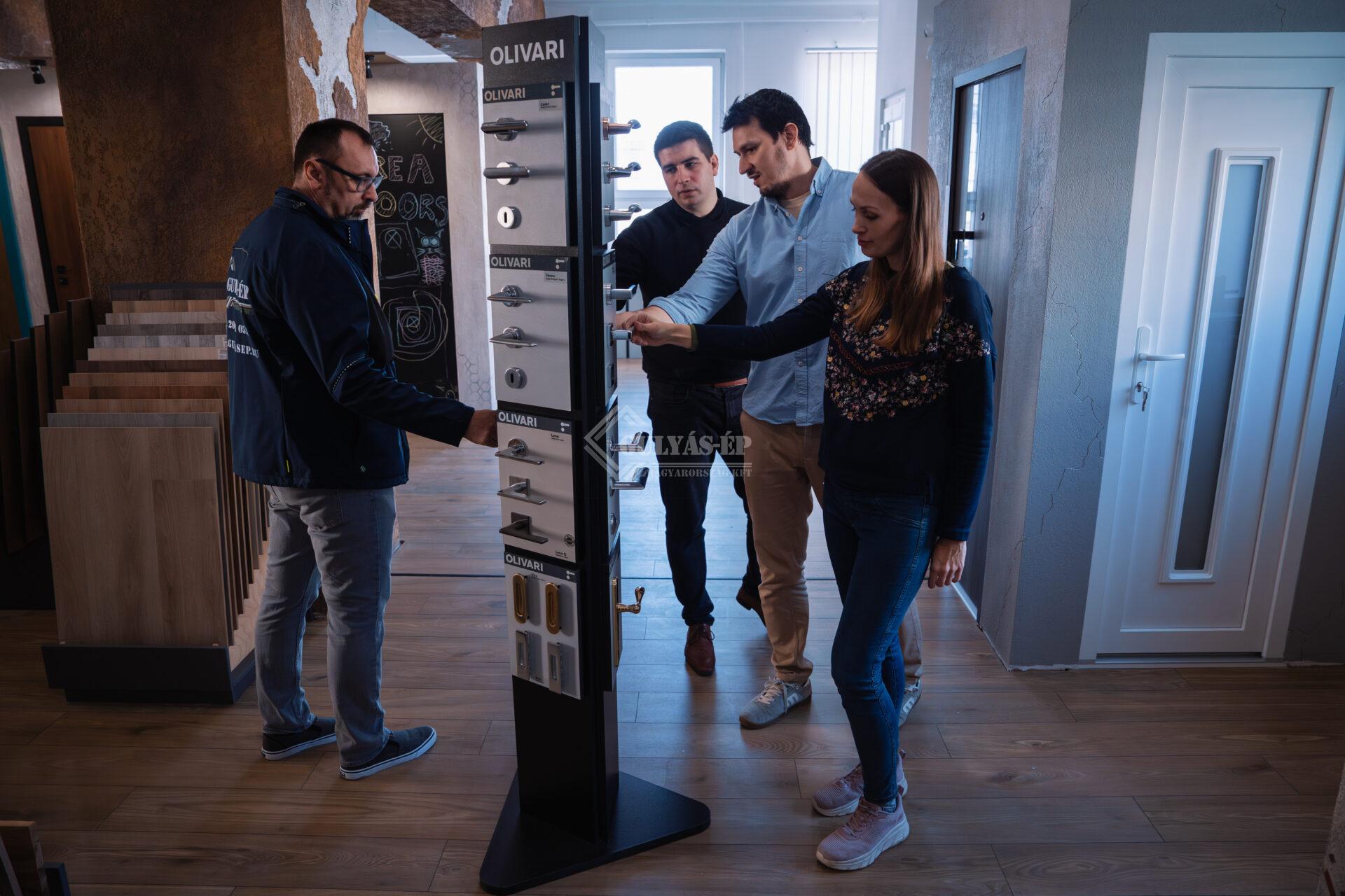 Megrendelőinkkel partnerünknél, a Kreadoors Kft.-nél jártunk, ahol a részletek kiválasztása is a közös munka része. Nálunk az együttműködés nem ér véget a tervezőasztalnál: elkísérjük a megfelelő helyekre